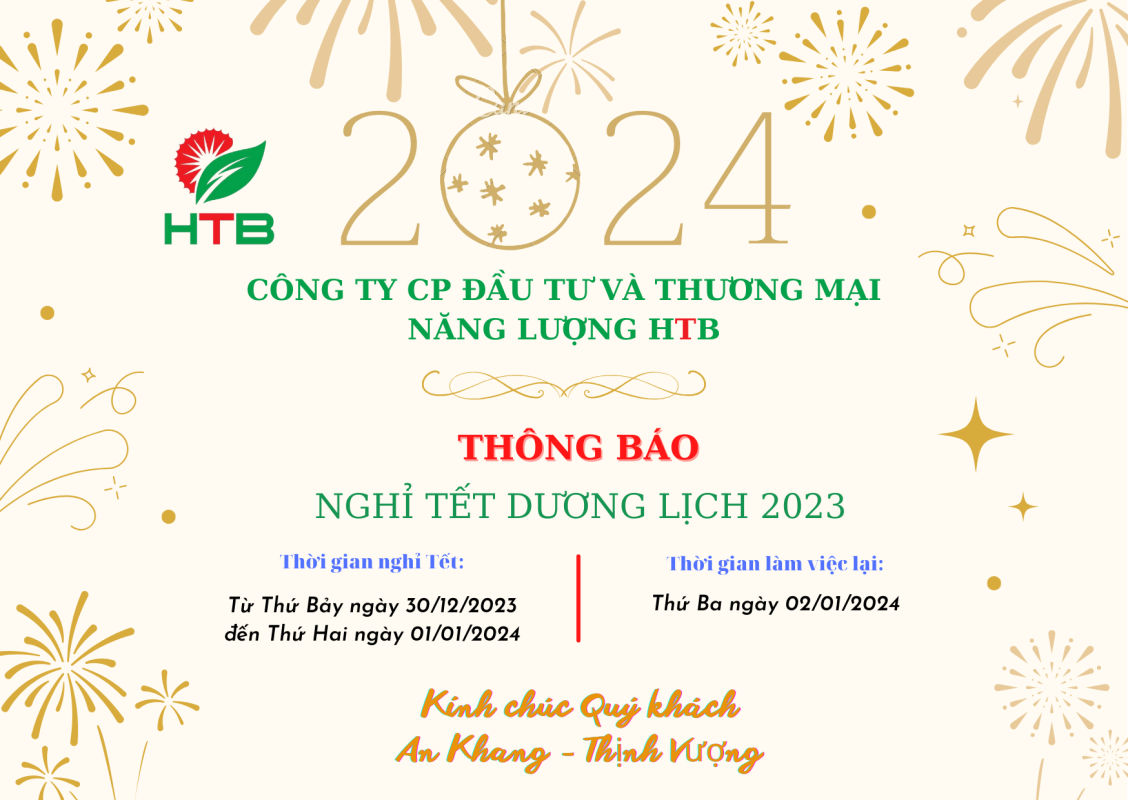 Công ty Cổ phần đầu tư và thương mại năng lượng HTB xin gửi đến Quý khách/Đối tác hàng lời chúc năm mới thật nhiều may mắn, an khang thịnh vượng. Cảm ơn Quý khách hàng/Đối tác đã luôn tin tưởng và ủng hộ sản phẩm, dịch vụ chúng tôi trong suốt thời gian vừa qua.